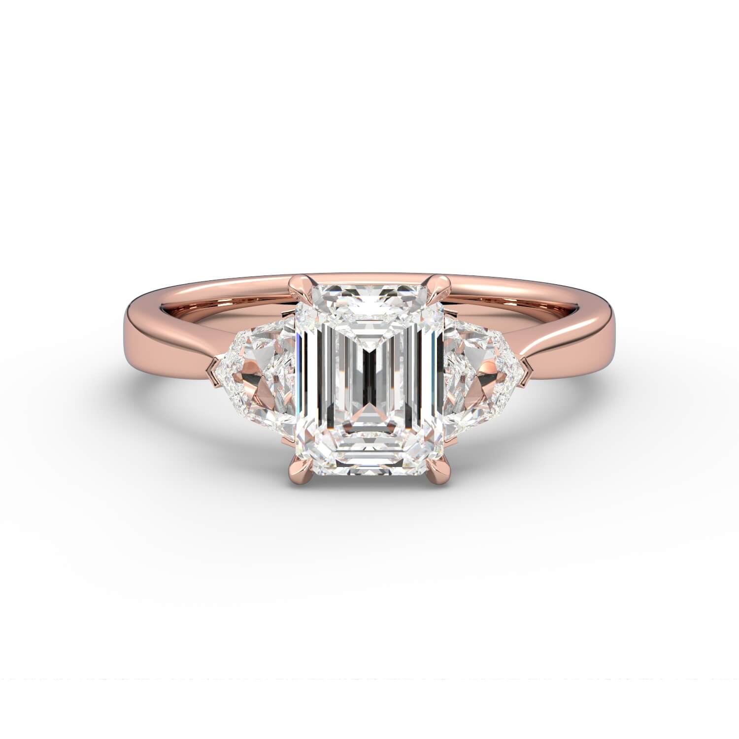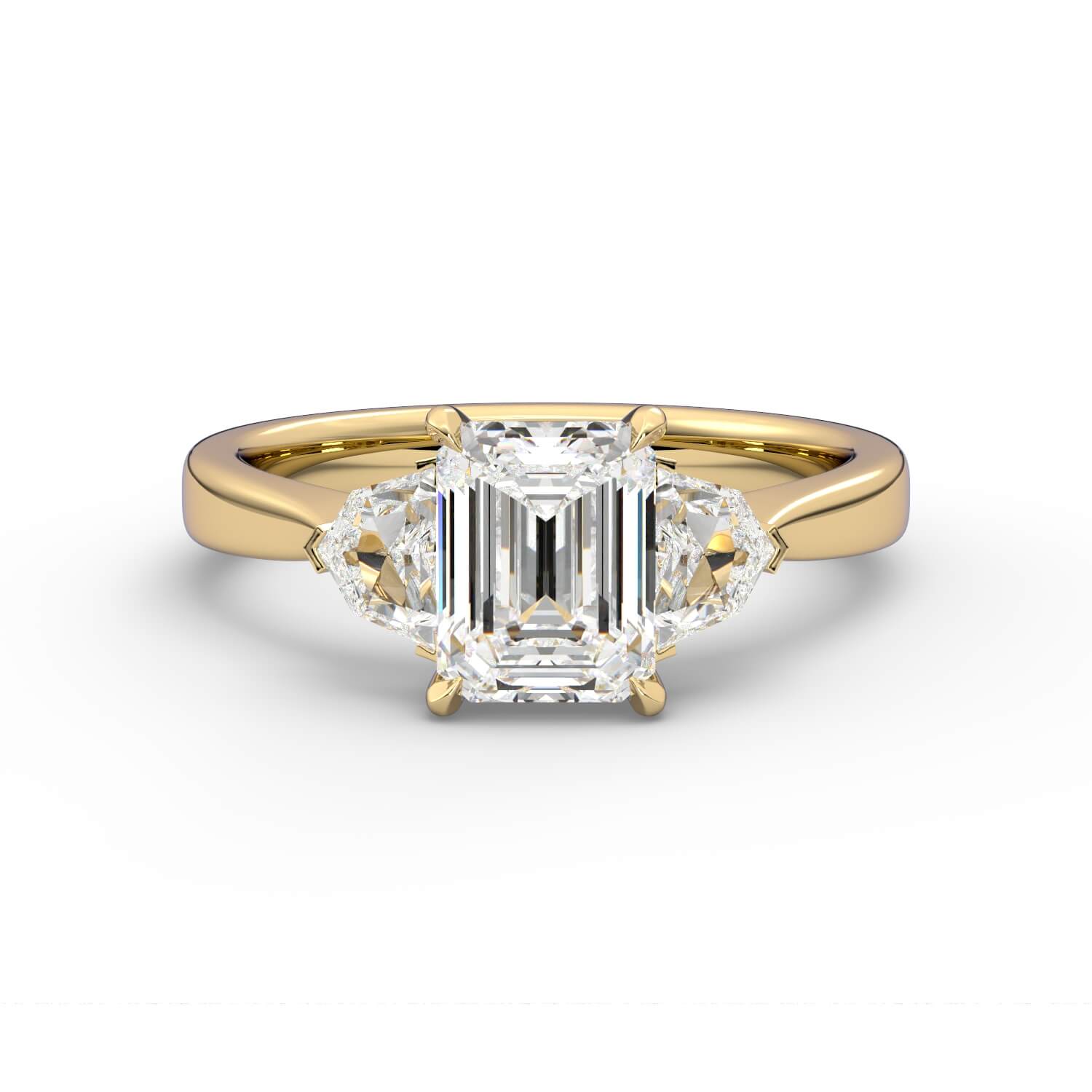 טבעת זהב לבן 14K שלוש אבנים משובץ ביהלום בחיתוך קושן ושני טרפזים