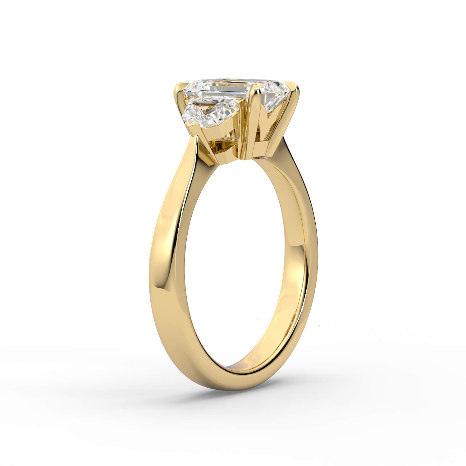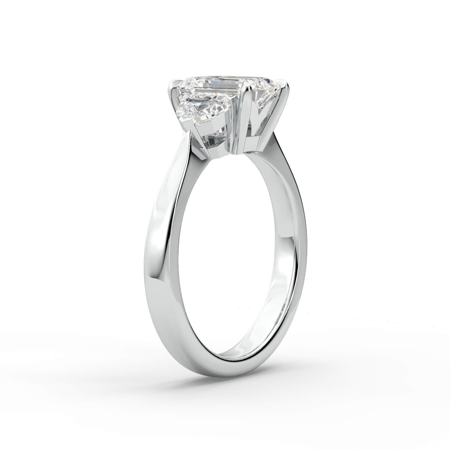 טבעת זהב לבן 14K שלוש אבנים משובץ ביהלום בחיתוך רדיאן ושני טרפזים
